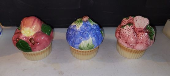 Vintage Strawberry Blueberry and Apple Ceramic Muffin Trinket Boxes$18San Antonio, TX