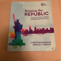 College Book~Keeping the Republic Power and Citizenship in American Politics The 8th Edition by Christine Barbour And Gerald C. Wright V B$30Imperial, CA