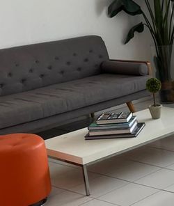 Mid Century Couch Grey Fabric W Wood Accents$950Middletown Township, NJ