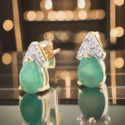Green Agate & Diamond Earrings – 18K Gold Plated – Designer Style – 2.15 CTW$60Salem, OR