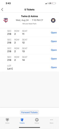 Astros vs. Twins For Wednesday tickets $100Houston, TX