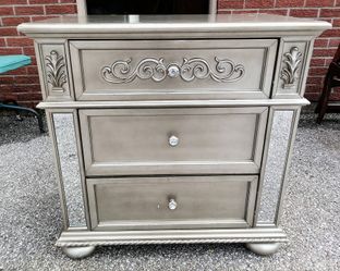 Stylish Glam Nightstand Dresser with Mirror Accents and Ornate Details - Well made!