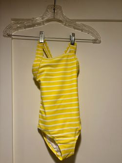 NWT Hanna Andersson Yellow & White Striped girls swimsuit 100cm Size 3/4$20Portland, OR