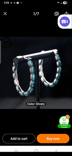 Silver Turquoise Oval Hoop Earrings$38Everett, WA