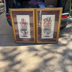 Orchid & Iris painting print Helen Brown artist signed Gold Framed 22.5×35 inch$40Inman, SC