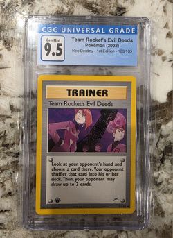 cgc 10 Team Rocket's Evil Deeds 1st Edition Neo Destiny 2002 Pokemon Card #103$50San Juan Capistrano, CA