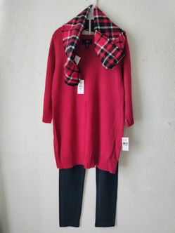 IZ Byer Girl 3pc Sweater Tunic / Legging Pant / Scarf Set Outfit Size XL (16) Red New$10Fontana, CA