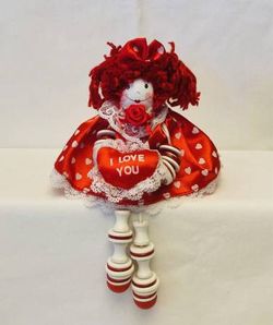 Shelf sitter doll button arms legs I Love You hearts red yarn hair Valentine’s Day$10Phoenix, AZ