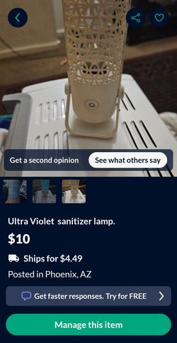 Ultra Violet sanitizer lamp.$10Scottsdale, AZ