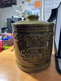 Vintage 1970s Monmouth ceramic lidded cookie jar avocado green $20Federal Way, WA