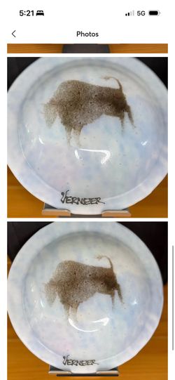 Buffalo and tribe Petroglyph Art Glass Plate 12" Signed Kris Vermeer Washington$25Federal Way, WA