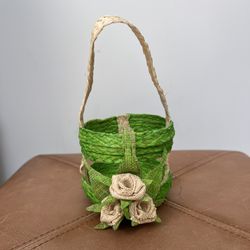 Handwoven Straw Basket With Handle & Flowers - Green & Natural - Cottagecore$5Los Angeles, CA