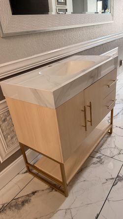 36" Modern Bathroom Vanity With Ceramic Sink & Gold Handls, Freestanding Wood Cabinet With 2 Drawers For Bathroom Storage$500Crowley, TX
