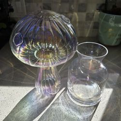 Clear Iridescent Glass Mushroom Vase and Regular Vase$35Alameda, CA