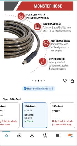 Simpson Cleaning 41030 Monster Series 4500 PSI Pressure Washer Hose, Cold Water Use, 3/8 Inch by 100 Feet, 100-Foot, Brown$120Phoenix, AZ