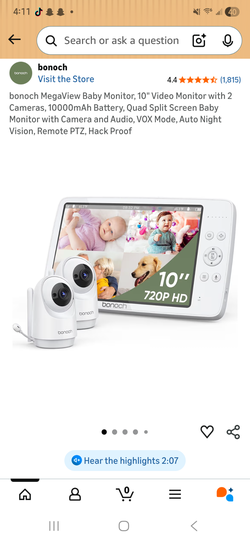 bonoch MegaView Baby Monitor, 10" Video Monitor with 2 Cameras,10000mAh Battery, Quad Split Screen Baby Monitor with Camera and Audio, VOX Mode, Auto$150Pico Rivera, CA