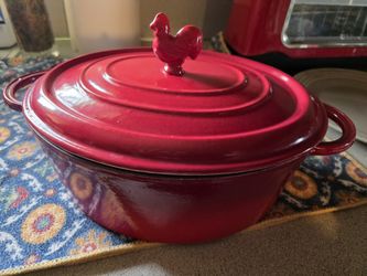 French Oval Enameled Cast Iron #27 4-5 qt Dutch Oven - RED with Rooster Lid$100Palm Desert, CA