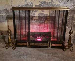 Vintage Victorian Brass Fireplace Frame/w Andirons &Electric Glow Logs$120Niskayuna, NY