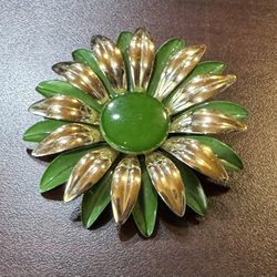 Vintage Green And Gold Metal Brooch$9Harlingen, TX