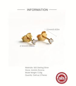 See Photos. Small Delicate Stud Earrings 925 Silver Hypoallergenic Zircon Inlaid Jewelry. 18K Gold Plated Simple Elegant Style For Daily Wear$5New York, NY