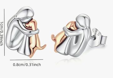 Girl hugging dog Sterling Silver earrings. We have them in silver and gold plated two tones. Measures 1/3 of an inch. Sells for $12 $12New York, NY