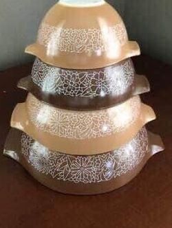 Vintage Pyrex Woodland Mixing Bowl Set Nesting Cinderella Brown 441 442 443 444$100Jacksonville, FL