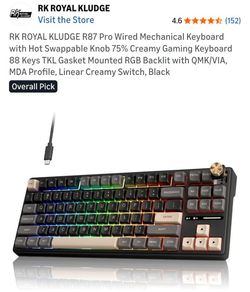 RK ROYAL KLUDGE R87 Pro Wired Mechanical Keyboard with Hot Swappable Knob 75% Creamy Gaming Keyboard 88 Keys TKL Gasket Mounted RGB Backlit with QMK/V$50Santa Ana, CA