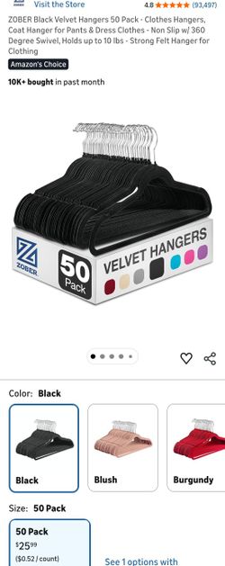 ZOBER Black Velvet Hangers 50 Pack - Clothes Hangers, Coat Hanger for Pants & Dress Clothes - Non Slip w/ 360 Degree Swivel, Holds up to 10 lbs - Stro$15Santa Ana, CA