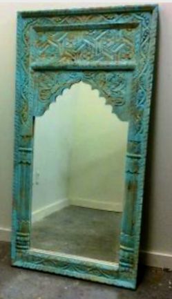 Carved Wooden Mirror from India, Distressed Blue Green (Aqua)$900Fort Lauderdale, FL