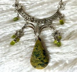Gorgeous Handmade Peruvian necklace featuring a large teardrop-shaped yellow/green jasper!$75San Marcos, CA