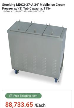 Stoelting MDC3-37-A 34" Mobile Ice Cream Freezer w/ 3 Tub Capacity, 115v, Silver$3,750Seatac, WA