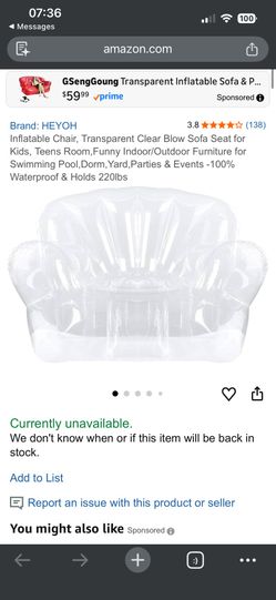 Clear Inflatable Chair $40Los Angeles, CA