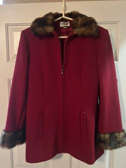 VINTAGE 1980s Mario De Pinto Long Red Wool Coat Faux Fur Collar Made In USA$65Coppell, TX