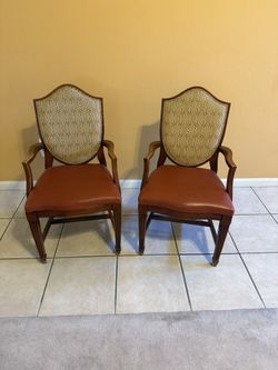 2 Straight And Uniformed Patterned Wood Chairs In Greer Shape $75Pumpkin Center, CA