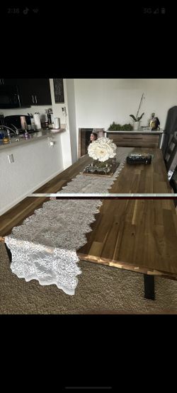 Solid Wood Table With Two Chairs Two Benches And The Base For It Paid Over $1,000 Don't Fit In The Apartment Asking $300 94 In Long$300Lake Worth, FL