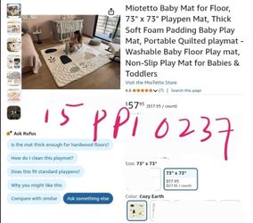 Miotetto Baby Mat for Floor, 73" x 73" Playpen Mat, Thick Soft Foam Padding Baby Play Mat, Portable Quilted playmat - Washable Baby Floor Play mat, No$15Las Vegas, NV