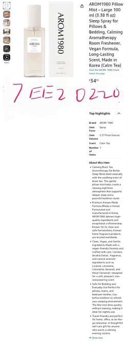 AROM1980 Pillow Mist – Large 100 ml (3.38 fl oz) Sleep Spray for Pillows & Bedding, Calming Aromatherapy Room Freshener, Vegan Formula, Long-Lasting $7Las Vegas, NV