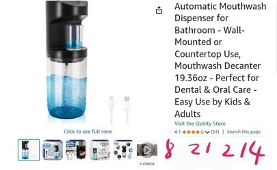 Automatic Mouthwash Dispenser for Bathroom - Wall-Mounted or Countertop Use, Mouthwash Decanter 19.36oz - Perfect for Dental & Oral Care - Easy Use by$8Las Vegas, NV