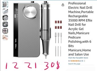 Professional Electric Nail Drill Machine,Portable Rechargeable 35000 RPM Efile Nail Drill for Acrylic Gel Nails,Manicure Pedicure Polishing,with 6 Bit$12Las Vegas, NV