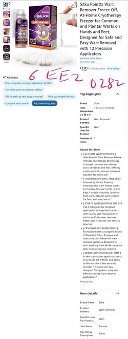 Silka Pointts Wart Remover Freeze Off, At-Home Cryotherapy Freezer for Common and Plantar Warts on Hands and Feet, Designed for Safe and Easy Wart $6Las Vegas, NV