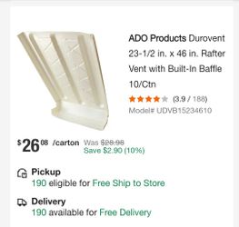 Rafter Vents (with Built In Baffle) - 2 Cartons$40Gig Harbor, WA