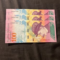 Venezuela 100 Bolivares Soberanos UNC Lot Of 3 Remplacement $20Kissimmee, FL