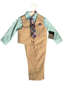 Toddler Boys' 4-Piece Formal Suit Set - TFW - Tan/Tiffany Blue - Size 12M$5Ontarioville, IL