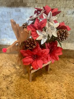 Wood Christmas Reindeer With Fake Flowers, Size 13 Inches Tall by 11 Inches Long by 11 Inches Wide $10Boca Raton, FL