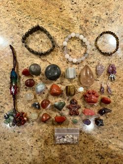 Assorted Crystal Stones including 3 Bracelets, Carvings, Tumbles, Chips, Teardrop, Pyrite Mushroom$35Boca Raton, FL