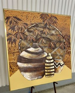 Mid-century gold metal frame oil impasto on canvas painting by Davidson$150Grand Prairie, TX