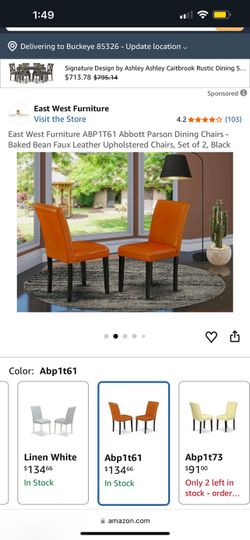 East West Furniture ABP1T61 Abbott Parson Dining Chairs - Baked Bean Faux Leather Upholstered Chairs, Set of 2, Black$70Buckeye, AZ