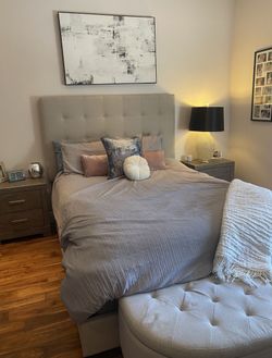 GREAT CONDITION: Light Beige Queen Headboard, Mattress And Brand New Gray Comforter $500Fort Lauderdale, FL