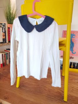 T-Shirt Long Sleeves Peter Pan Collar Navy Blue And White$10Miami, FL
