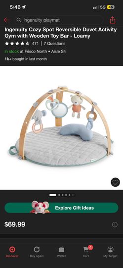 Ingenuity Cozy Spot Reversible Duvet Activity Gym with Wooden Toy Bar - Loamy$30Frisco, TX